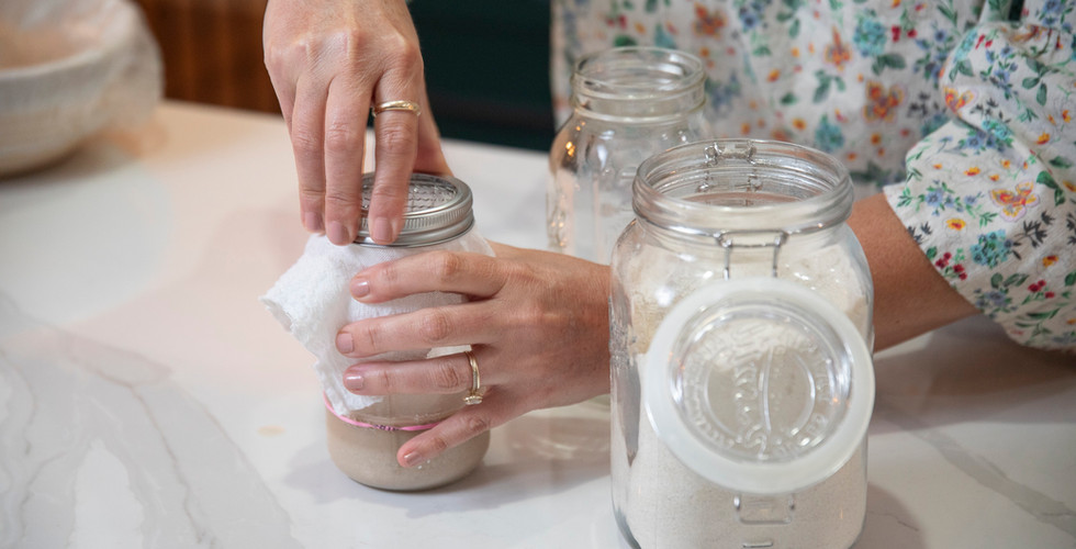The sourdough starter is step one. Bell said to get the starter going, she begins by mixing brown rice flour and water in a glass container. Bacteria in the air begins reacting with the mixture, literally feeding on the water and sugar in the flour.